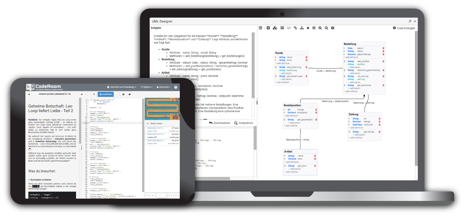 Automatische Fehleranalyse und intelligente Aufgabenbewertung direkt im CodeRoom-Editor – DSGVO-konform und sofort nutzbar.